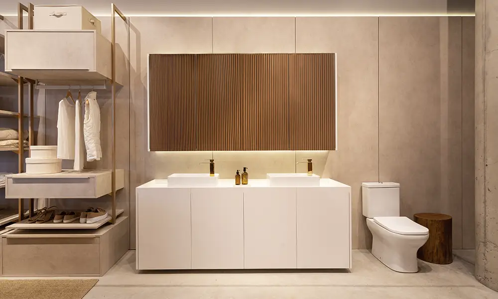 Esse número não é apenas marketing — ele representa a liberdade criativa que pouquíssimas marcas conseguem oferecer com consistência industrial. Para entender o impacto real disso, vale imaginar o processo de projeto de um ambiente complexo, como um closet completo, uma suíte integrada ou uma cozinha gourmet. Cada ambiente envolve decisões sobre cor de frente, cor de corpo, textura de acabamento, tipo de ferragem, perfil de puxador, cor de iluminação embutida, organização interna de cada módulo. São dezenas de variáveis que, quando multiplicadas pelas mais de 2.000 combinações disponíveis, resultam em um projeto que dificilmente alguém vai replicar — mesmo que essa seja a intenção.